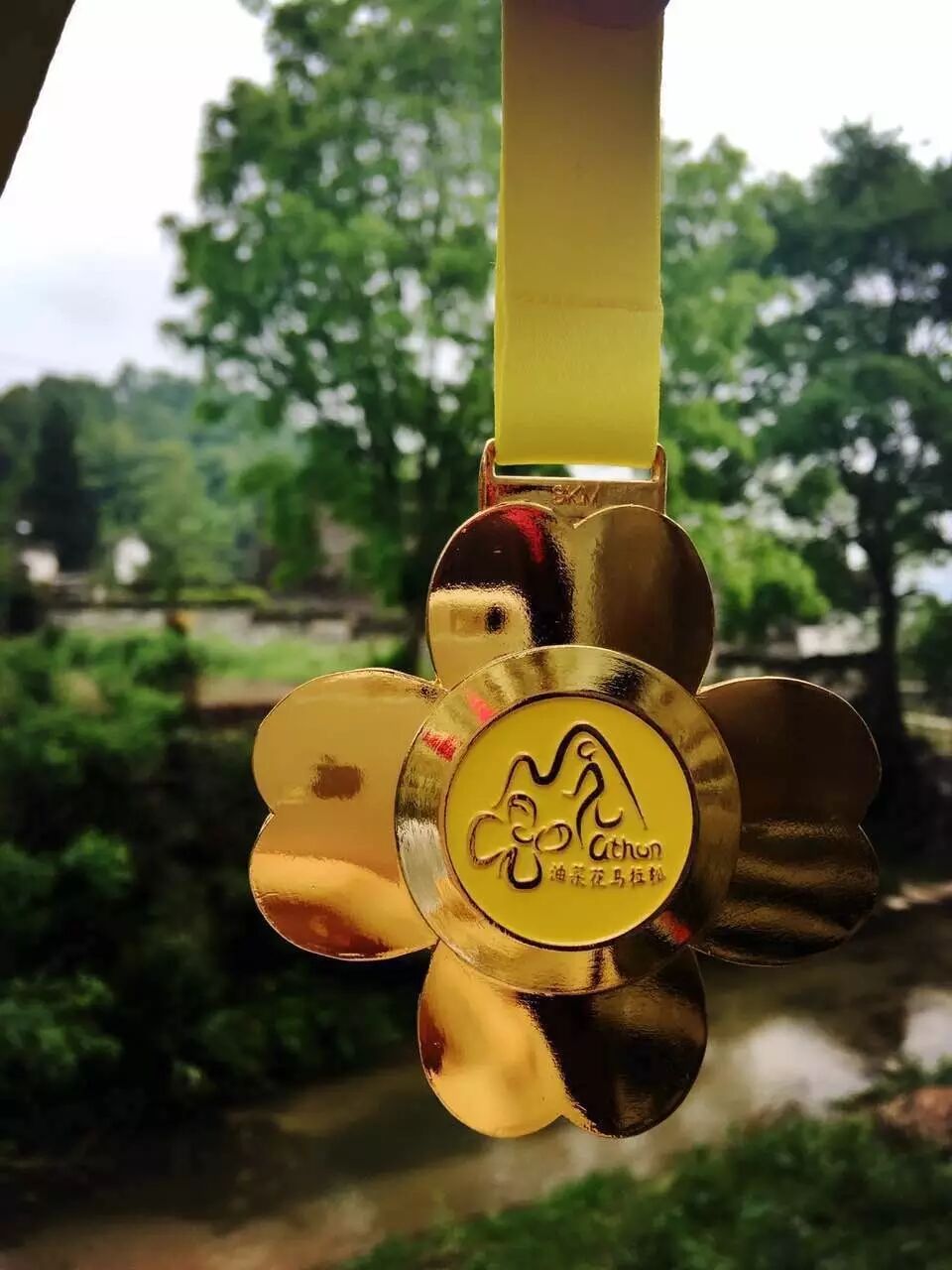 独特的完赛奖牌。组委会发放的奖牌,正中是花蕊,采用绿作为主基调,油菜花的四片花瓣为奖牌牌面,恰如一朵怒放的油菜花。据介绍,奖牌的制作使用的高密度新型材料,保证它不受氧化侵扰。值得一提的是,油菜花的花语是“加油”,这与马拉松运动可谓天作之合。
