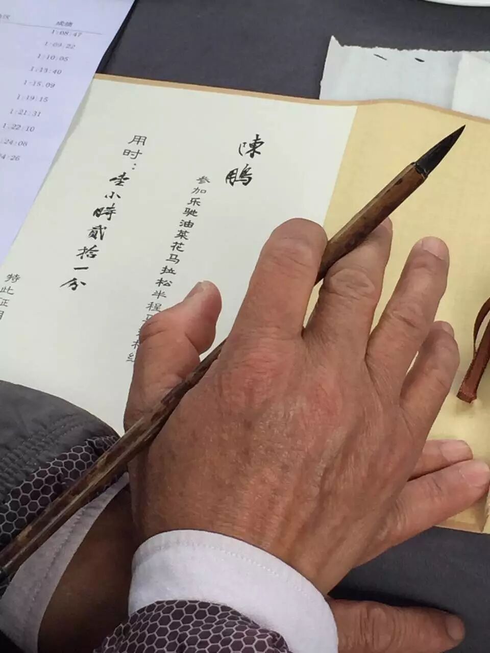 独特的卷轴完赛证书。完赛证书上的姓名,全部是由10名书法家现场用小楷写就的。