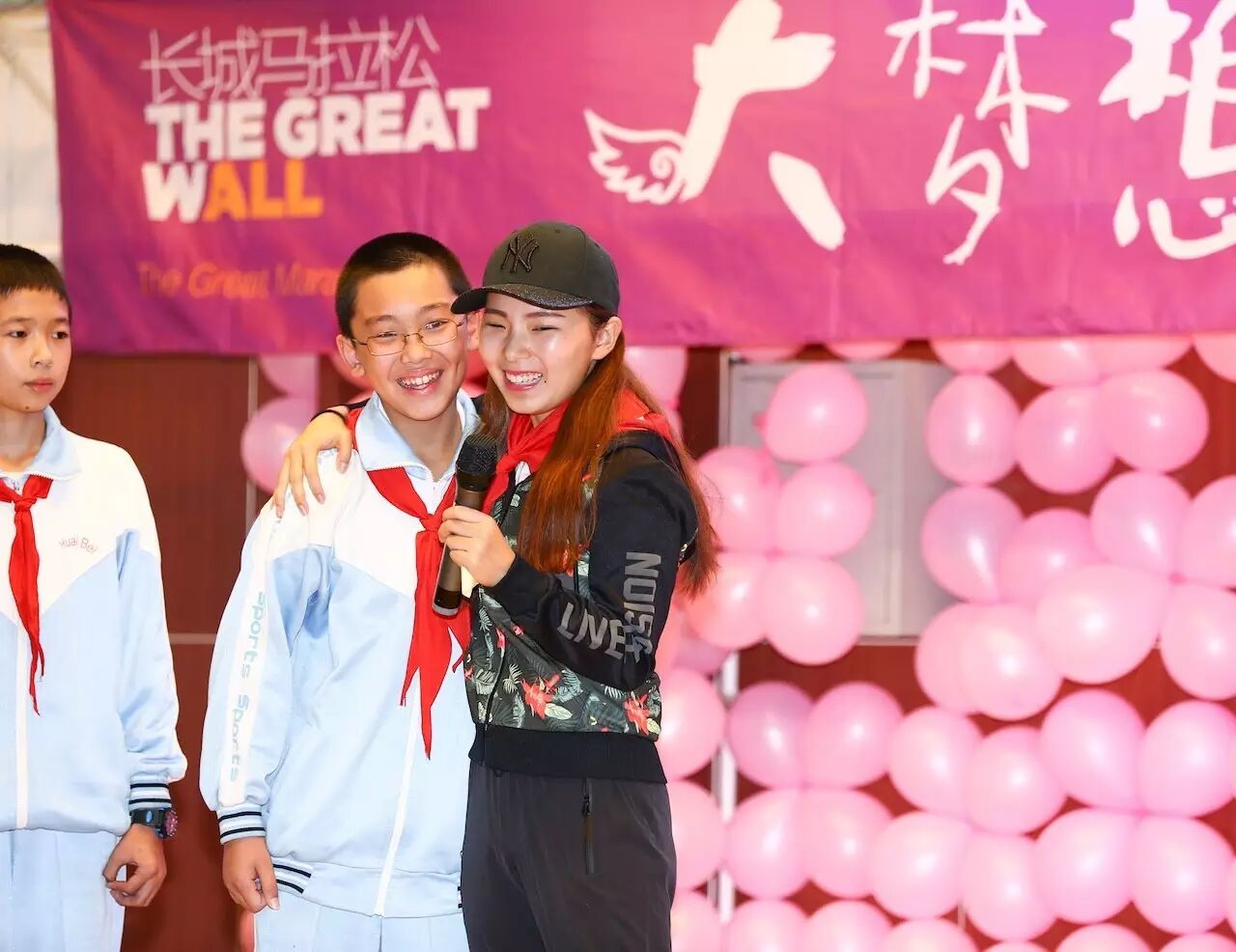 苏玲同现场的同学互动时说:“小朋友你们知道吗?当你长大后去到了世界各地,只要你讲THE GREAT WALL,他们都会向你竖起大拇指,这就是一种真正的来自内心的骄傲。你们每天都有机会看到长城,今天长城马拉松连接了我们彼此,让我们走到同一个课堂上,我们应该为中华民族瑰宝长城感到荣耀。”