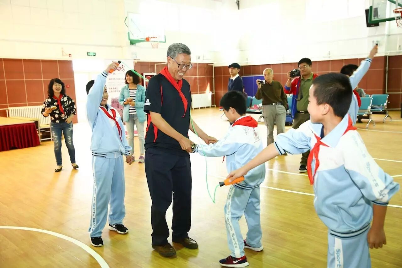 中国长城学会副会长董耀会与孩子共跳跳绳