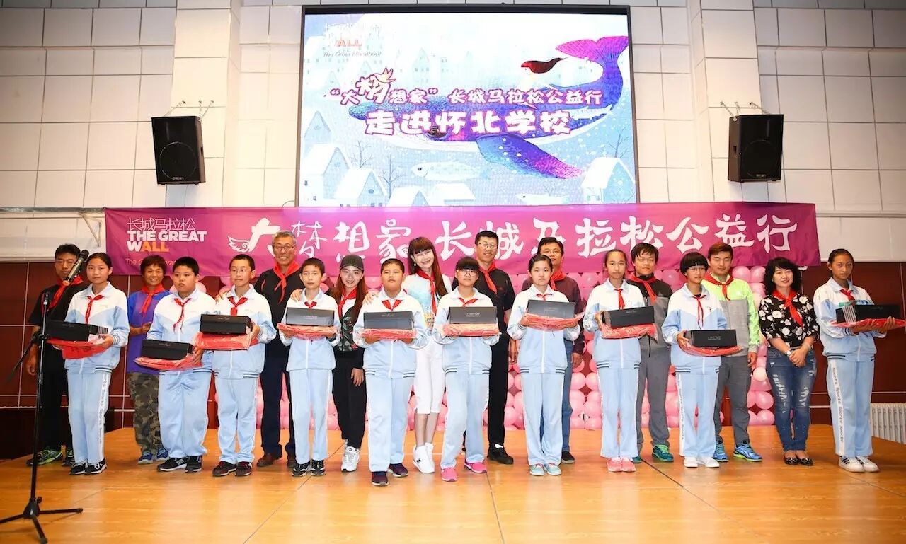 每个小孩子都有自己大大的梦想,童年操场上的奔跑、笑闹带给孩子许多单纯的快乐,9月27日“大梦想家”长城马拉松公益行首站走入长城脚下的怀北学校,长城马拉松主办方,TTD腾提度体育总裁苏玲、及在主办方邀请下体操奥运冠军何可欣、奥运会国家队体能教练吴广亮、影视演员金亮、长城学会副会长董耀会、来自中石化易捷、匹克体育、统一海之言赞助商爱心志愿者代表、长城马拉松爱心跑友一同为学校的孩子们送上了一堂专业有趣的体育课。
