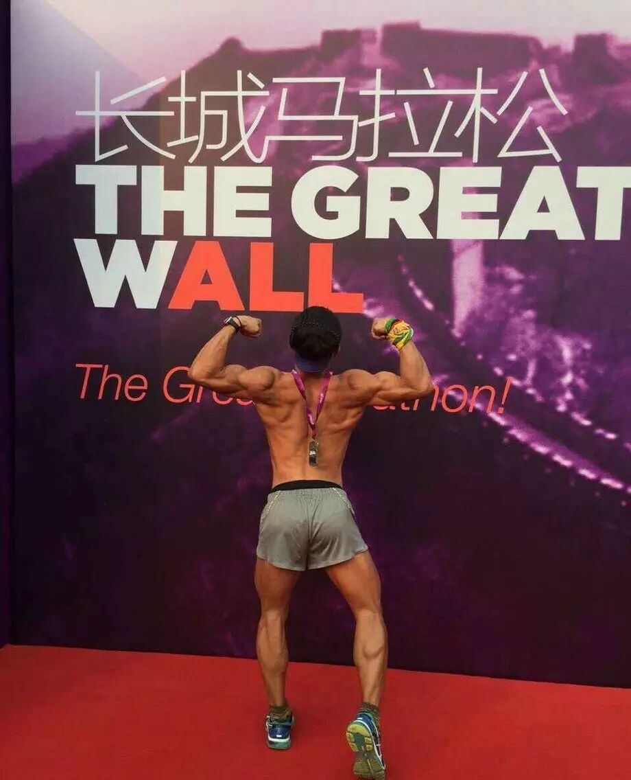 瞧瞧这哥们儿的肌肉,健硕的肱二、肱三,标准的倒三角,浑圆的臀大肌,长城+猛男,小编已经忍不住吞口水了,帅哥转过脸来看看呗