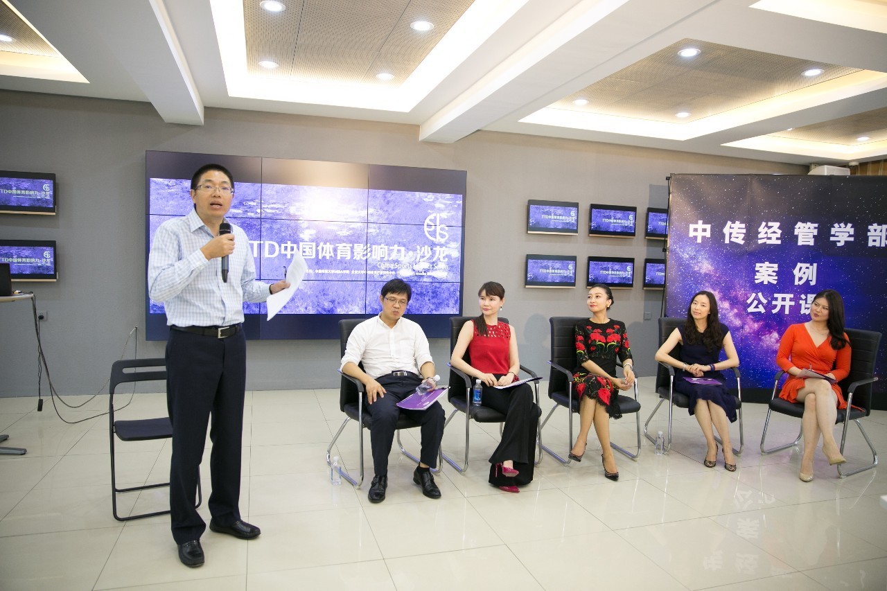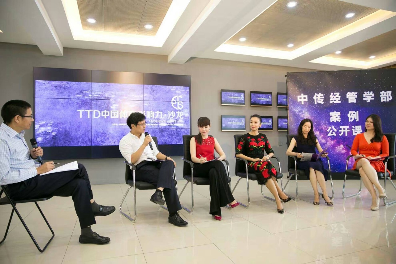 中国体育影响力沙龙.案例公开课第一课于7月30日下午14:00在中国传媒大学广告学院四层多功能厅举行。本次公开课由中国传媒大学经管部商学院、北京大学中国体育产业研究中心、TTD腾提度体育联合主办。由来自体育+娱乐跨界领域内的多位专家就“体育娱乐名星共震创造影响力新经济”这个主题进行了深入探讨。沙龙由TTD体育创始人及董事长苏玲、至初无限创始人及董事长孟珺做经典案例分享,中国传媒大学经管学部案例研究中心主任孙道军、北京大学体育产业研究中心主任何文义、北京大学中国体育产业研究中心特约研究员景瑜、蓝色光标活动管理集团第四事业部总经理徐珲组成专家讲评团,对体育+娱乐的商业模式进行讲评。同时活动还得到中新网、搜狐体育、新浪体育、新浪娱乐、乐视娱乐、乐嗨直播、星唯娱乐、东星娱乐、综艺报、传媒内参等媒体的大力支持,其中乐嗨直播对沙龙进行全程直播,得到5万观众的收看和3000观众转发。