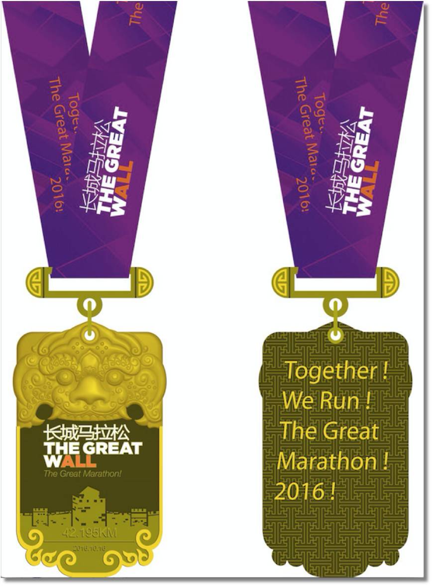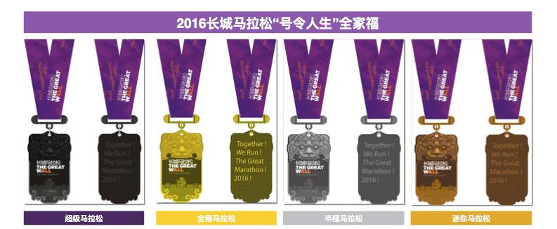 在发布会上令所有跑者期待已久的2016长马奖牌造型终于揭开了神秘的面纱,2016长城马拉松奖牌的设计力求将更多的中国传统文化艺术元素融入其中,让全世界的人对中国传统文化有更多的了解,从而更好地发扬与传承。奖牌整体延续15年设计风格,虎头3D立体形象更加突出,虎头令牌设计贴合长城历史题材,代表荣耀,更代表一个目标。令牌分层的长城形象巧妙分割主logo和里程,使得整体形象更加丰满,画面更加协调。针对长城马拉松不同赛程,奖牌进行包装及颜色上的区分:全马、半马、欢乐跑,分别是金银铜材质,超马是全黑色上漆,彰显其大气与雄浑气魄。