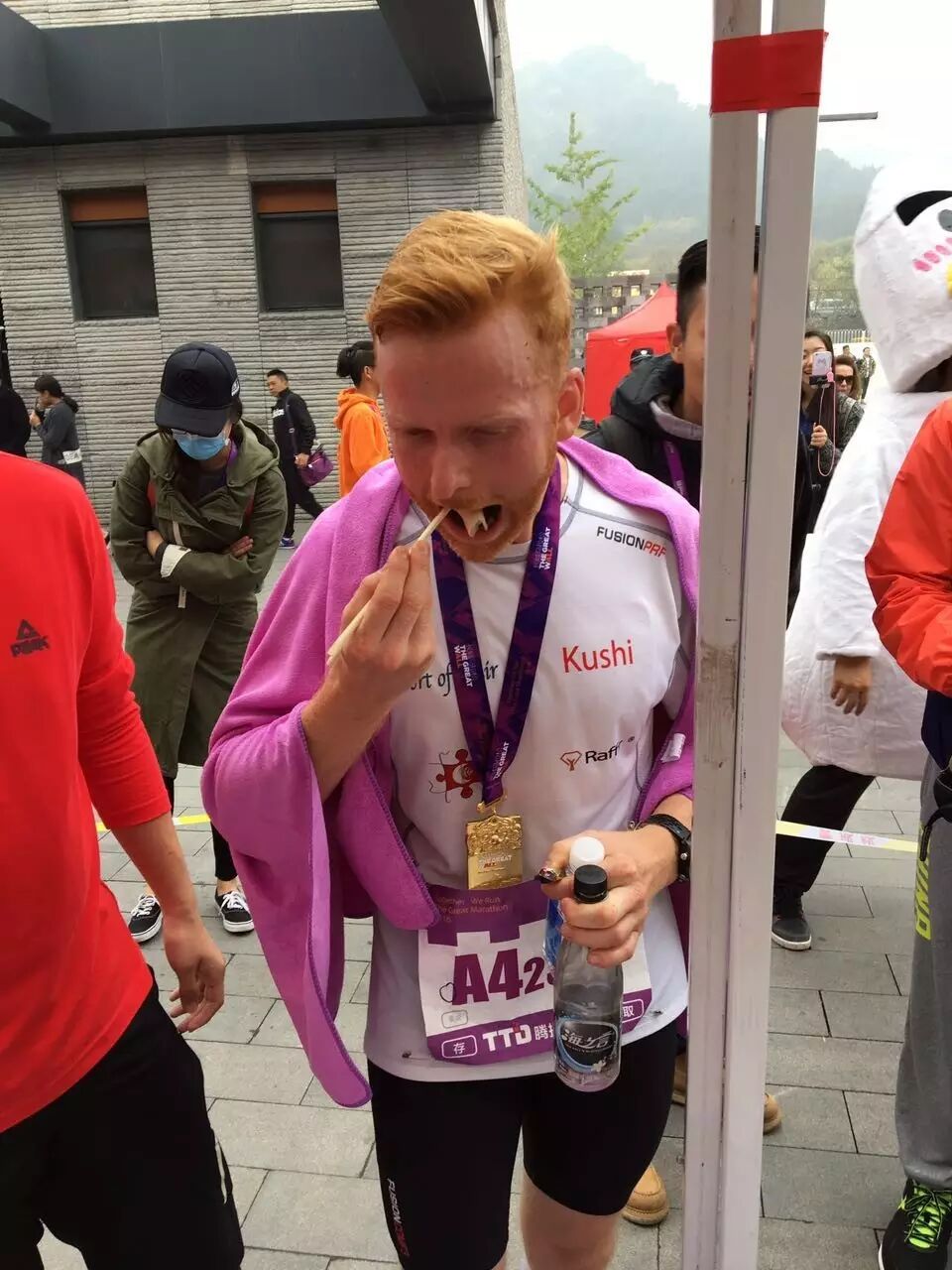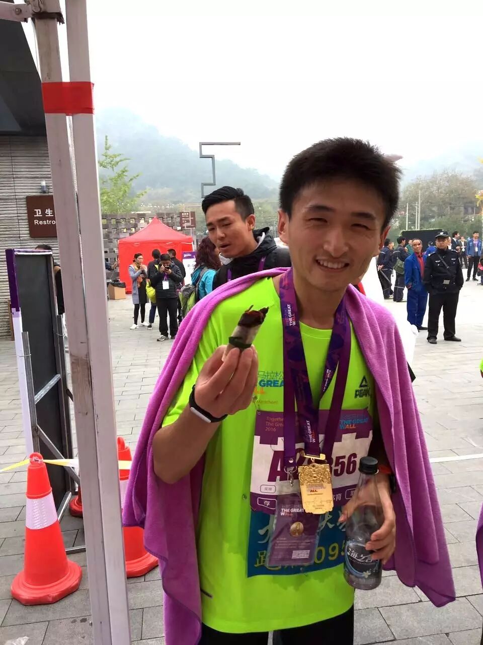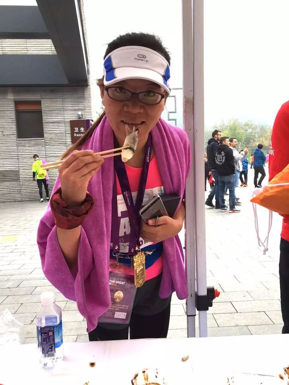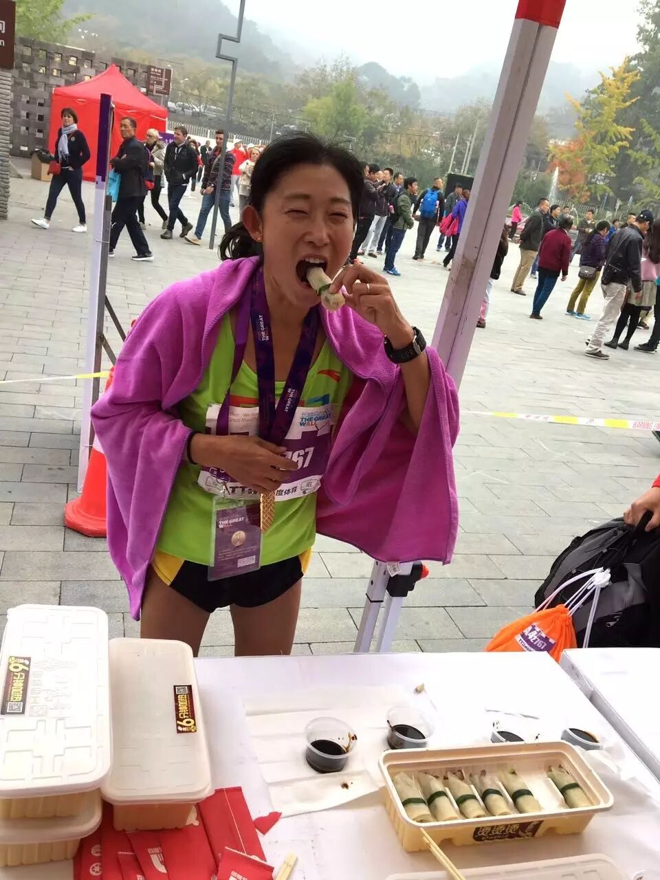 外国选手也在长马现场尝到了中国老字号全聚德小鸭哥的美味鸭卷