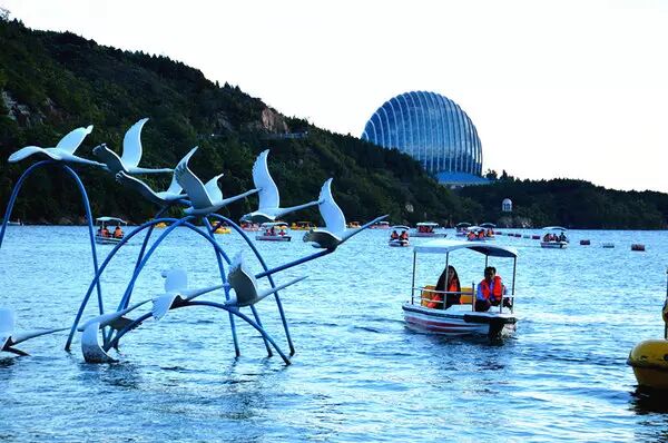 雁栖湖位于北京郊区怀柔城北8公里处的燕山脚下,北临雄伟的万里长城,南偎一望无际的华北平原,是一处风光旖旎的水上乐园。雁栖湖水面宽阔,湖水清澈,有千岛湖之湖泊,江南湿气气候,兔耳岭草甸之美。每年春秋两季常有成群的大雁来湖中栖息,故而得名。