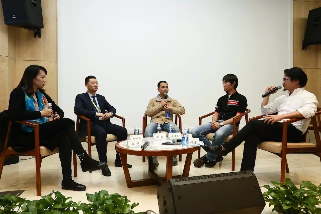 圆桌论坛嘉宾(从左至右):腾提度体育副总裁盛云飞、北奥集团党委书记、董事总经理夏海峰、北京汽车集团有限公司品牌管理部副部长赵焱、中石化易捷销售有限公司副总经理李宏