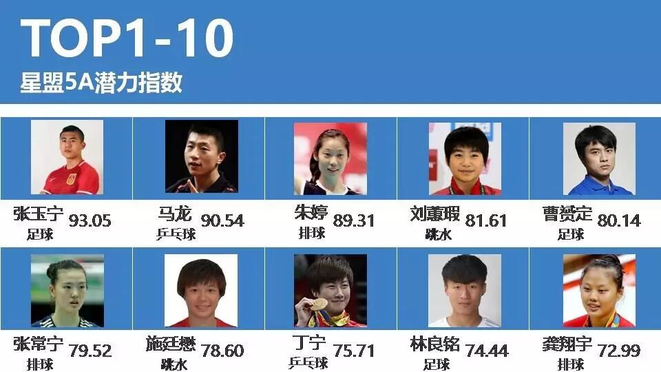此次星盟5A指数,不仅发布了现有的综合指数榜单,还根据星盟5A指数的价值观和方法论创新性的发布了潜力指数榜单,对极具潜力的未来体育明星的发展起到指导作用。