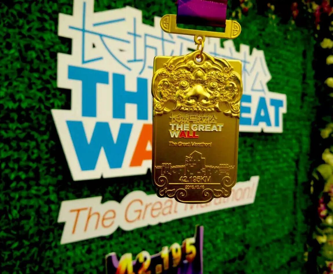 长城马拉松奖牌的设计不同于其他奖牌,长马奖牌的主题设计理念来自于成吉思汗建立蒙古帝国时调兵遣将用虎头军令牌,以此来表达威严和崇高。虎头3D立体形象高居在上,代表荣耀,令牌分层的长城形象巧妙分割主logo和里程,使得整体形象更加丰满,画面更加协调。奖牌的设计力求将更多的中国传统文化艺术元素融入其中,让全世界的人对中国传统文化有更多的了解,从而更好地发扬与传承。