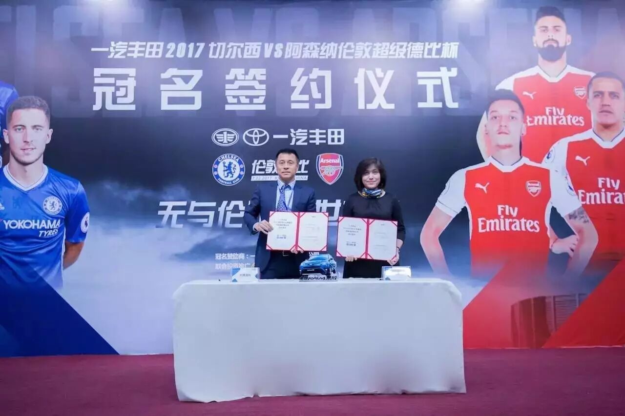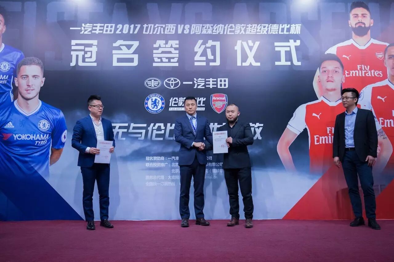 三者合体就成了一项最炫的国际顶级足球赛事,成功冠名这样的比赛,你说一汽丰田是不是在放大招!2017年4月26日下午,一汽丰田2017切尔西VS阿森纳伦敦超级德比杯冠名签约仪式在北京鸟巢举行。