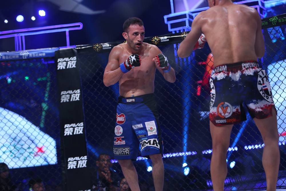 这次在青岛站的铁笼中,闫西波面对菲律宾搏击中坚力量奥德来势汹汹的挑战,以铁拳回应。再度为拳迷奉献了引爆全场的疯狂秒杀,开场后连续的重拳将奥德砸翻,在1分25秒时,用肘部重顶在对手头部,跟上一记重拳,暴力KO!